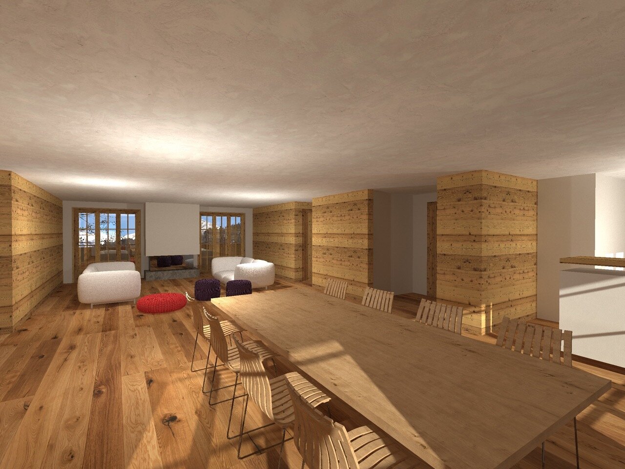 Die neuen Erstwohnungen zeichnen sich durch einen modernen lichtdurchfluteten Grundriss aus, welcher beinahe komplett auf interne Erschließungsflächen und Korridore verzichtet. Der offene Wohn- und Essbereich lässt Morgen- und Abendsonne in den Raum fallen und öffnet einen wunderbaren Ausblick Richtung Berge.